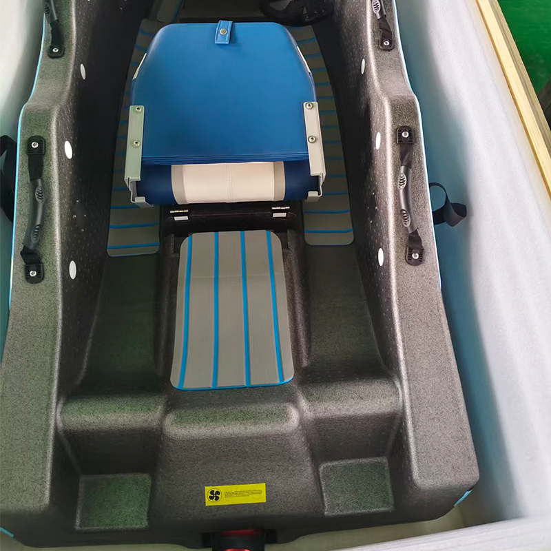 1. Detailed Appearance & Structural Inspection: Technicians meticulously examine the entire hull, deck, and components of the electric kart boat for any imperfections, scratches, cracks, or inconsistencies in the gel coat or mold lines. All fittings, handles, and the rudder assembly are checked for secure installation and flawless finish.